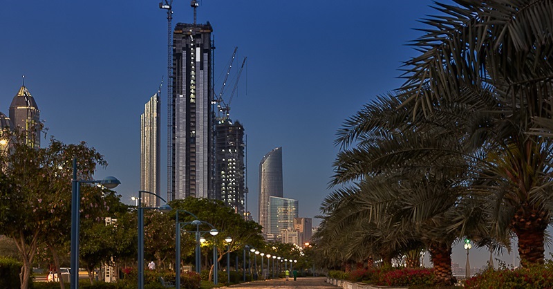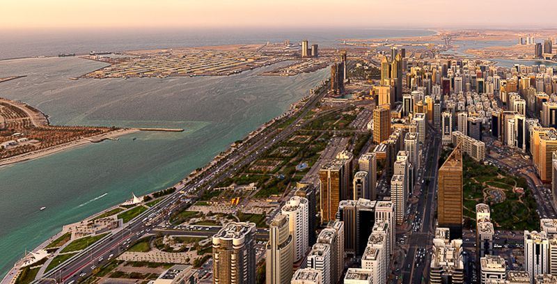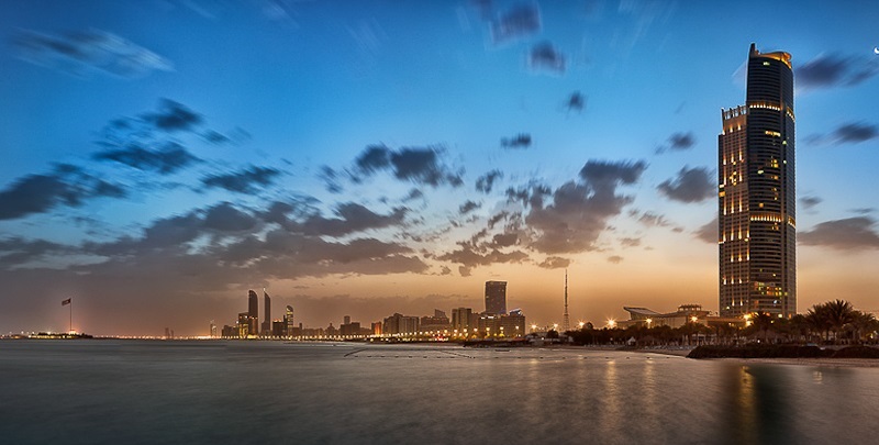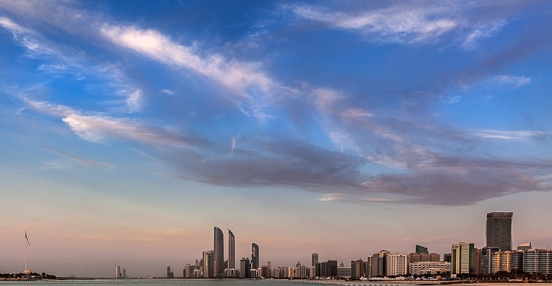 Abu Dhabi is the capital of the United Arab Emirates. The city is located on a scorpion-shaped island in the Arabian Gulf, southwest of Dubai. Before the discovery of oil in the early 1960s, Abu Dhabi was a small village. Today this metropolis is a harmonious blend of the modern world and traditional Arabian culture, with its striking glassy skyline on the Corniche forming a backdrop for an oasis-like city full of mosques, shopping malls, cultural centers, and luxury hotels. Wide tree lined roads, large gardens, and green boulevards contrast with the surrounding desert. Abu Dhabi City with its unique skyline can be part of any modern film or commercial that shows a paste of high-end, modern and futuristic life style.
