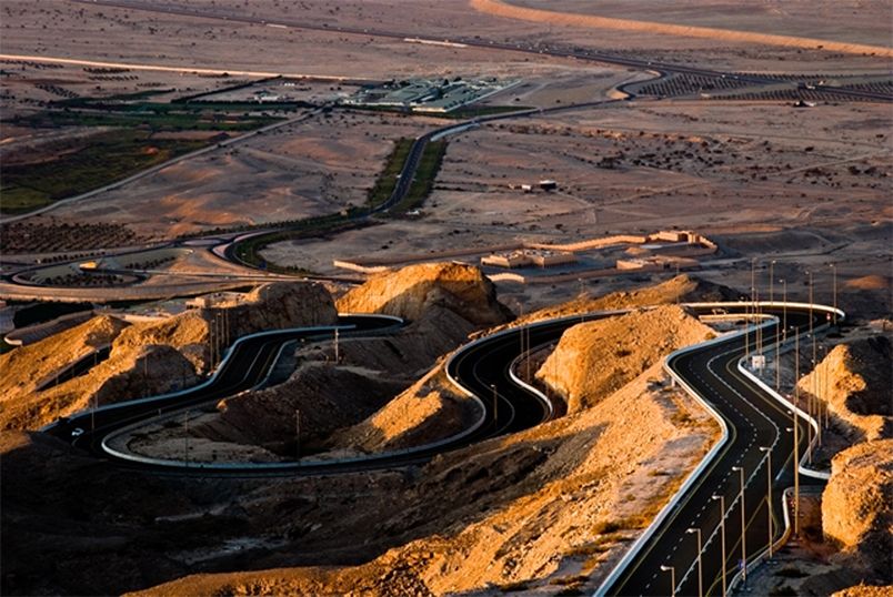 Jabal Hafeet Mountain Road is one of the greatest driving roads in the world. Located on the outskirts of Al Ain, in the United Arab Emirates (UAE), the road extends for 7.3 mi (11.7 km) up the mountain, topping out at an elevation of 1.219m (4,000ft) above the sea level. Thanks to the two lanes going up the mountain, you can take the 60 bends as fast or slow as you like, enjoying views of the desert. The Jebel Hafeet Mountain Road boasts 60 corners and three lanes (two climbing and one descending), the road still remains an adrenaline-pumping journey. It leads to Jebel Hafeet Mountain, the second-tallest mountain in the United Arab Emirates. The road winds through the craggy limestone making up the mountain until it reaches the summit.